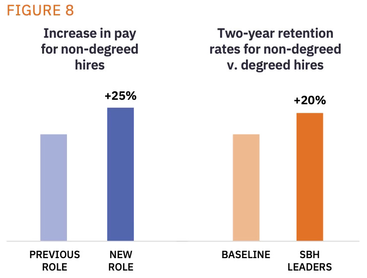 Many companies still screen candidates based on degrees and years of experience rather than demonstrated skills and potential. This excludes talented individuals, especially from underrepresented communities, who could excel if given the opportunity. Skills-based hiring (SBH) is proving to be a game changer. Companies that embrace SBH are seeing higher retention rates (+20%) and increased pay (+25%) for non-degreed hires compared to traditional hiring models.